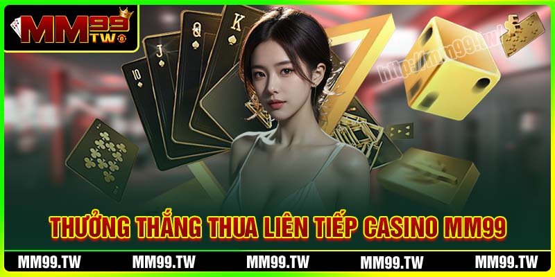 Sự kiện khuyến mãi thắng thua liên tiếp Live Casino tặng thưởng hấp dẫn được MM99 thiết kế để đem lại lợi ích tối đa cho các thành viên khi tham gia chơi hạng mục này tại sảnh CASINO. Với mức hoàn trả lên đến 8.000.000 VND, chương trình sẽ giúp người chơi giảm bớt lo lắng và tận hưởng tựa game một cách thú vị hơn.